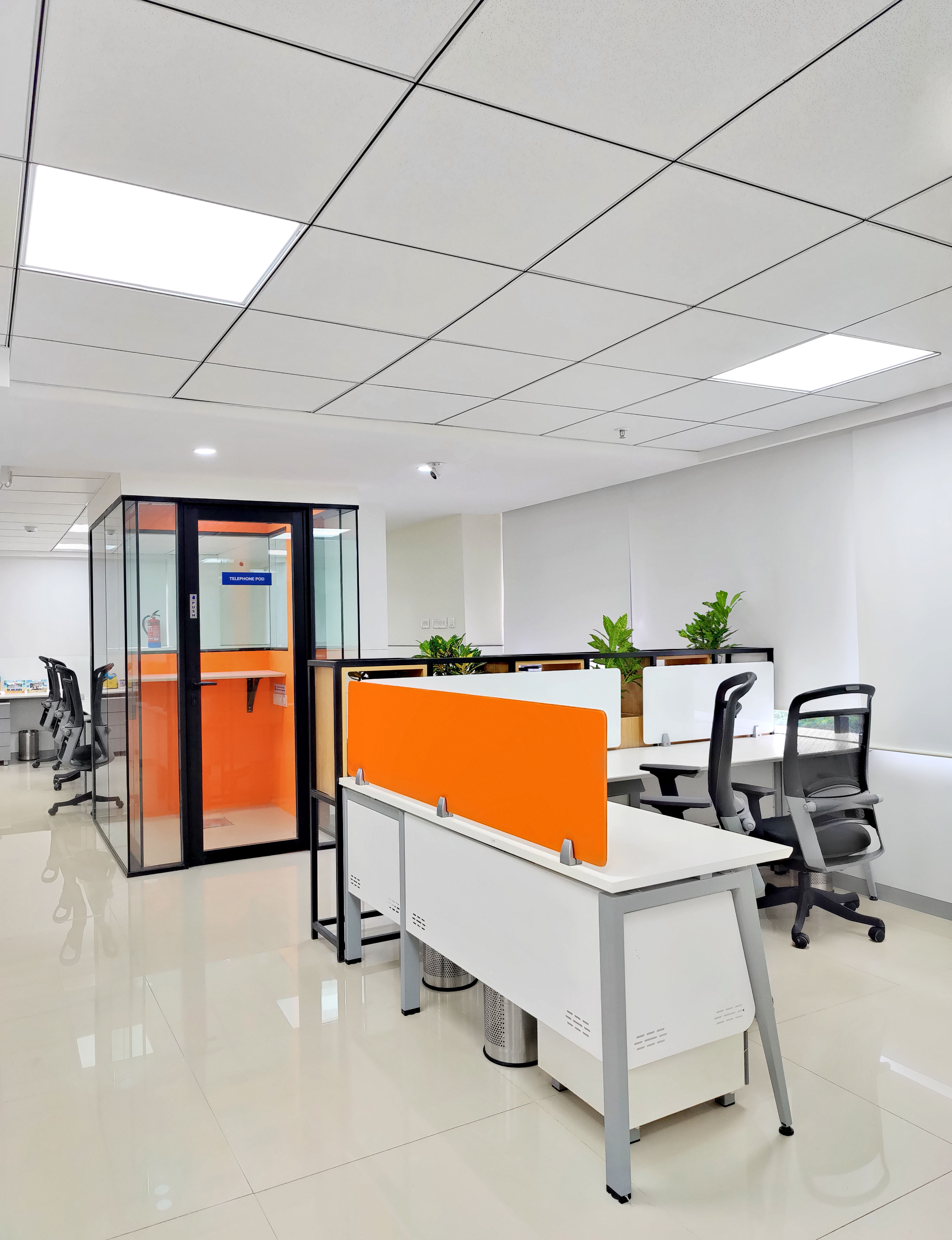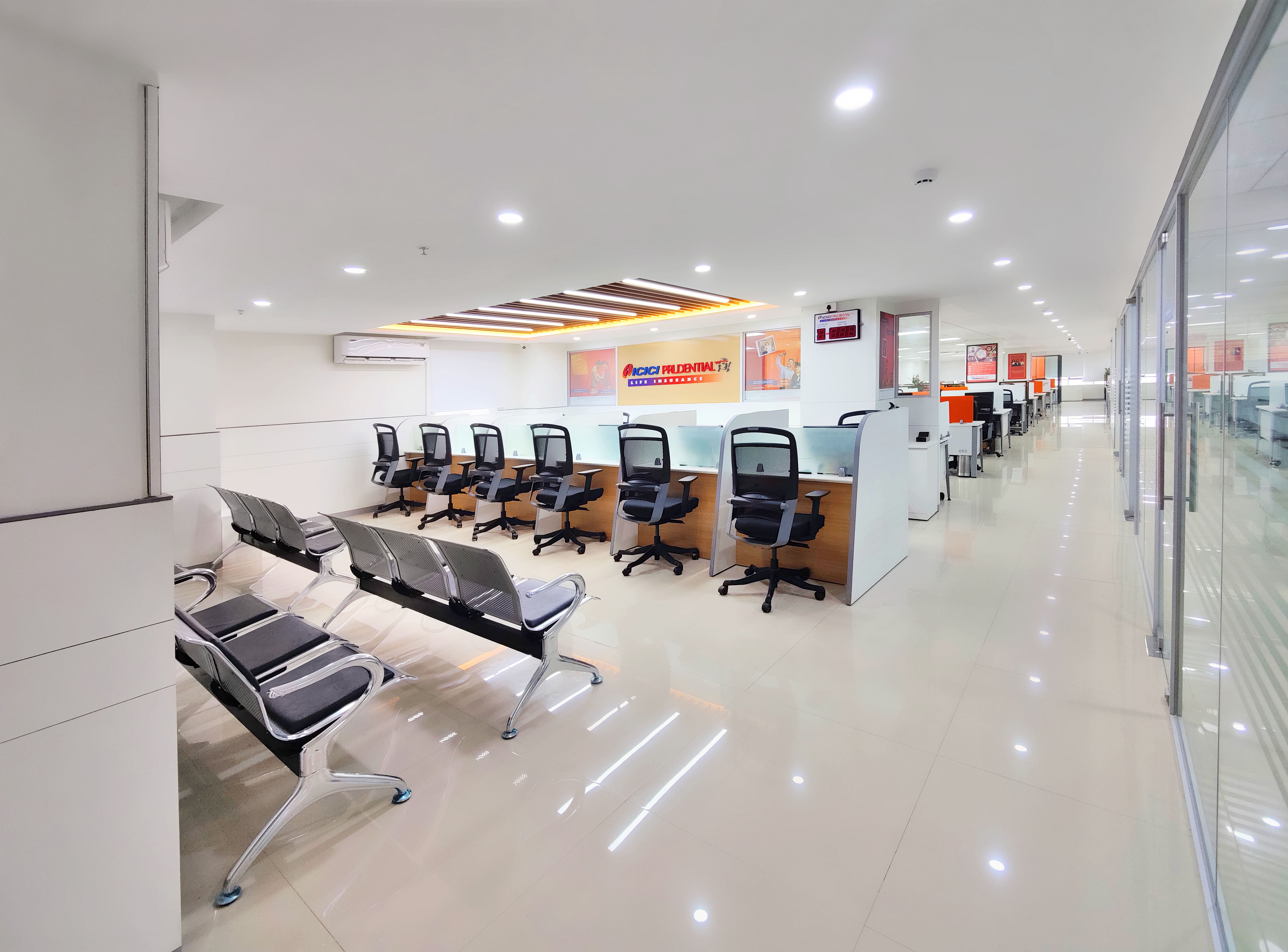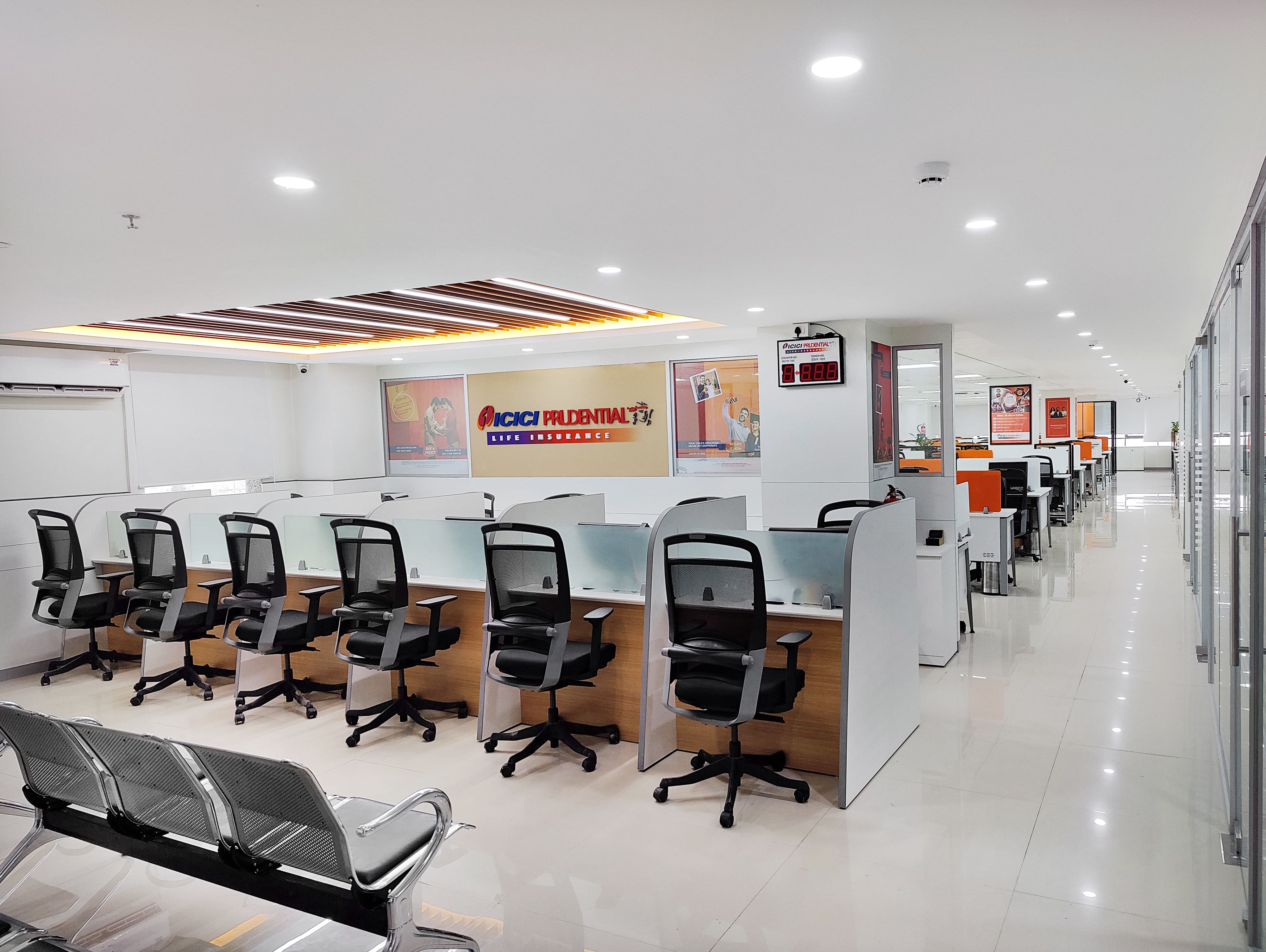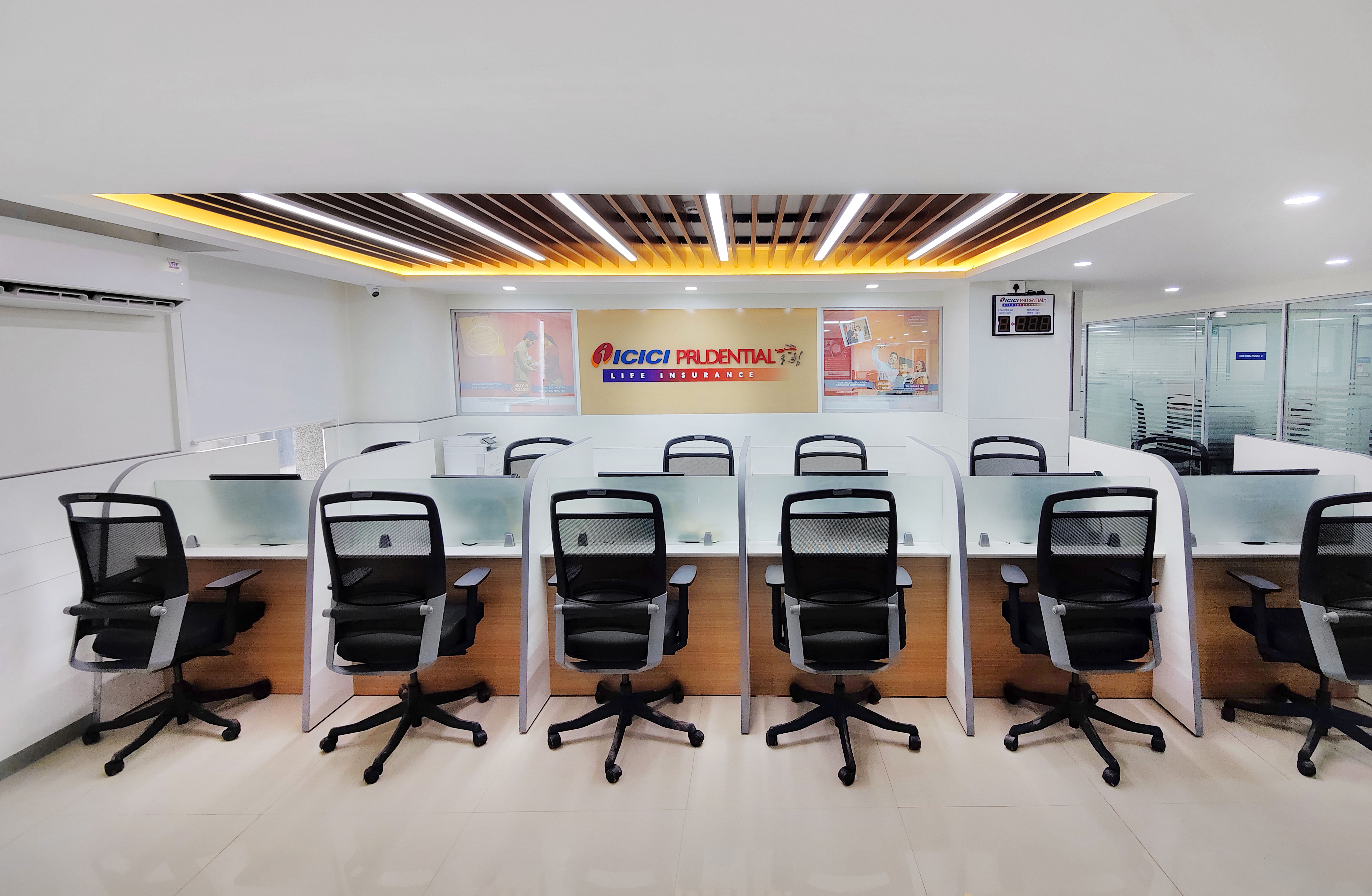 Vivid Decor designed and executed a fully functional and aesthetically refined office for ICICI Prudential in Ahmedabad, delivering a seamless blend of modern design, efficiency, and brand identity.