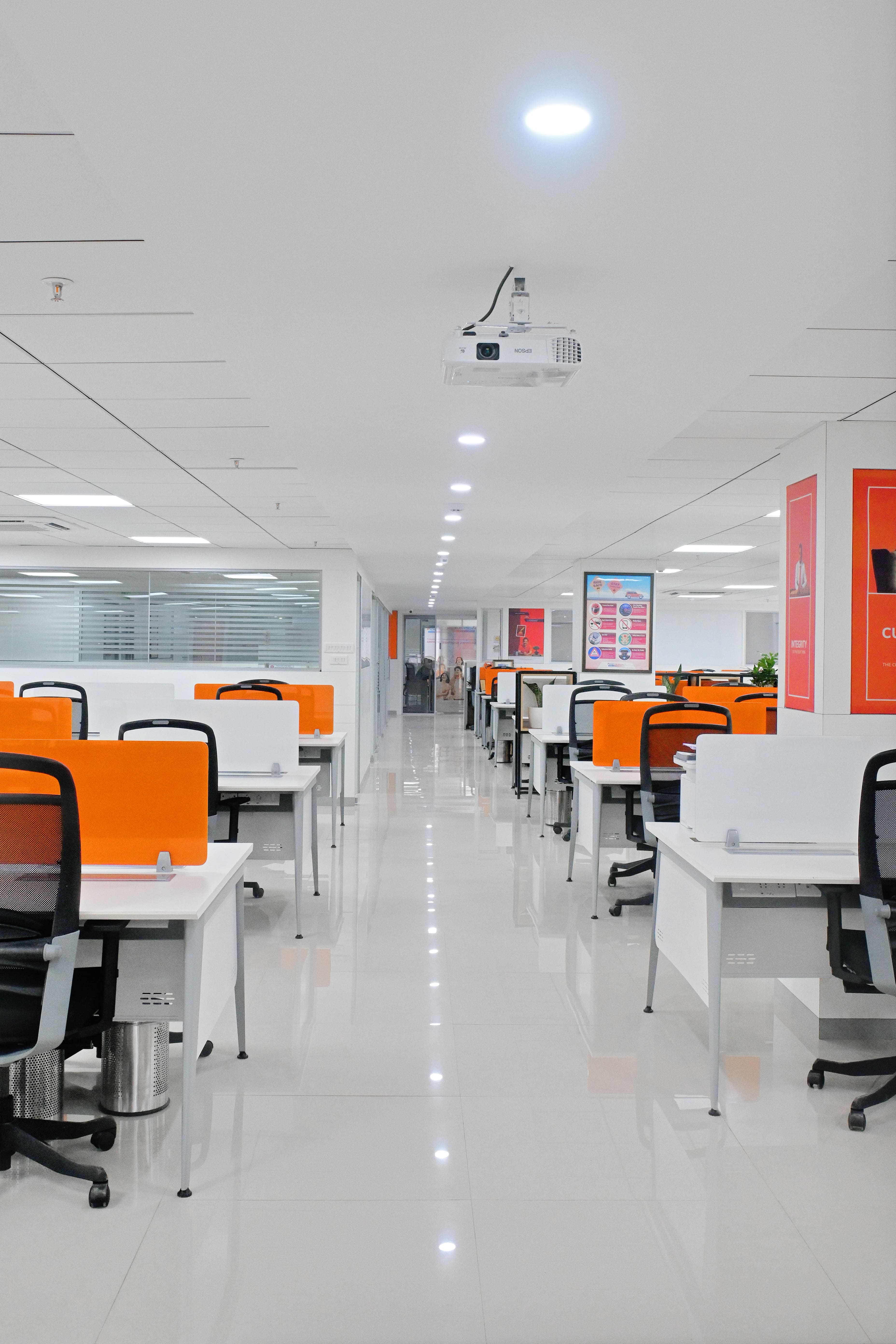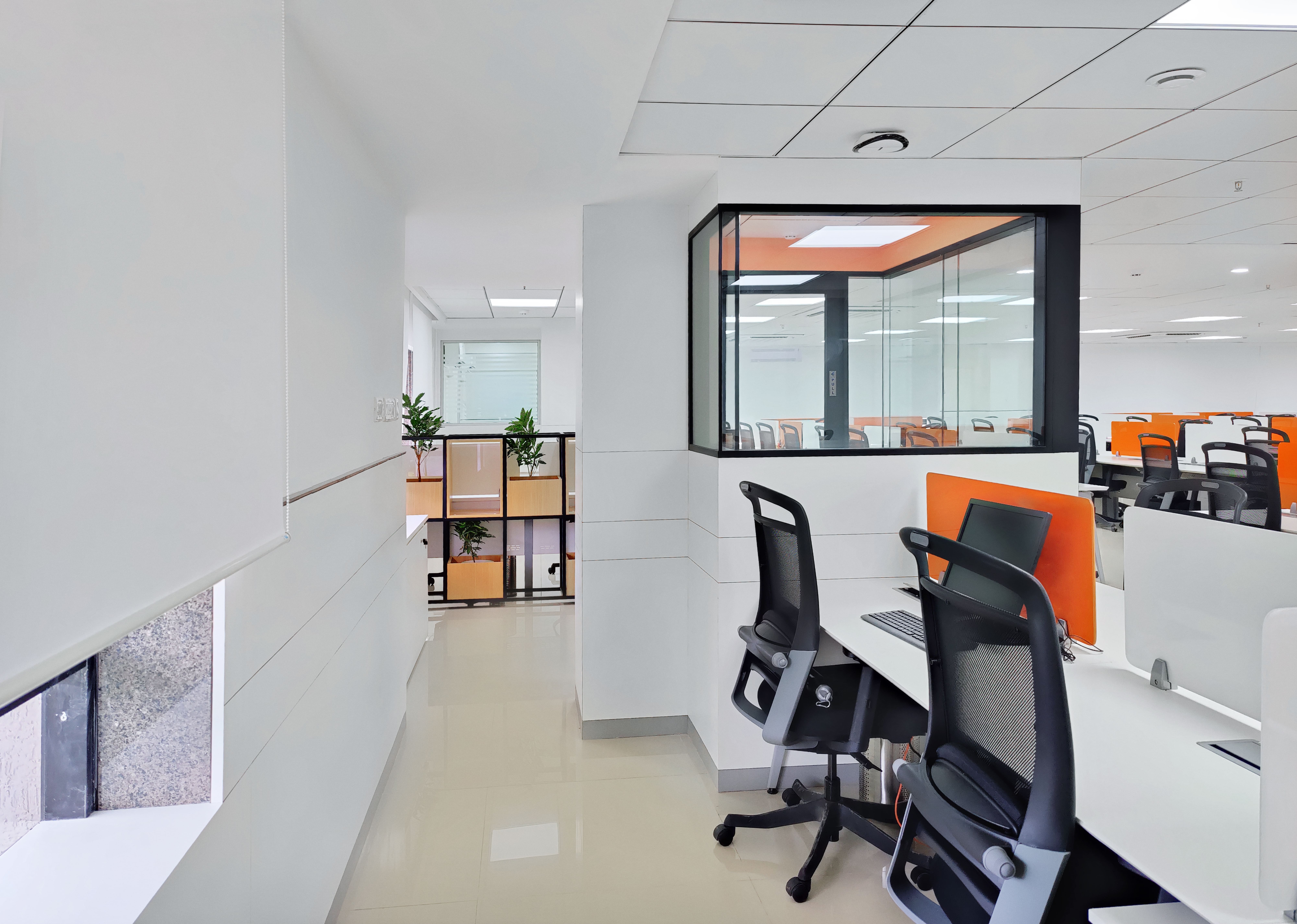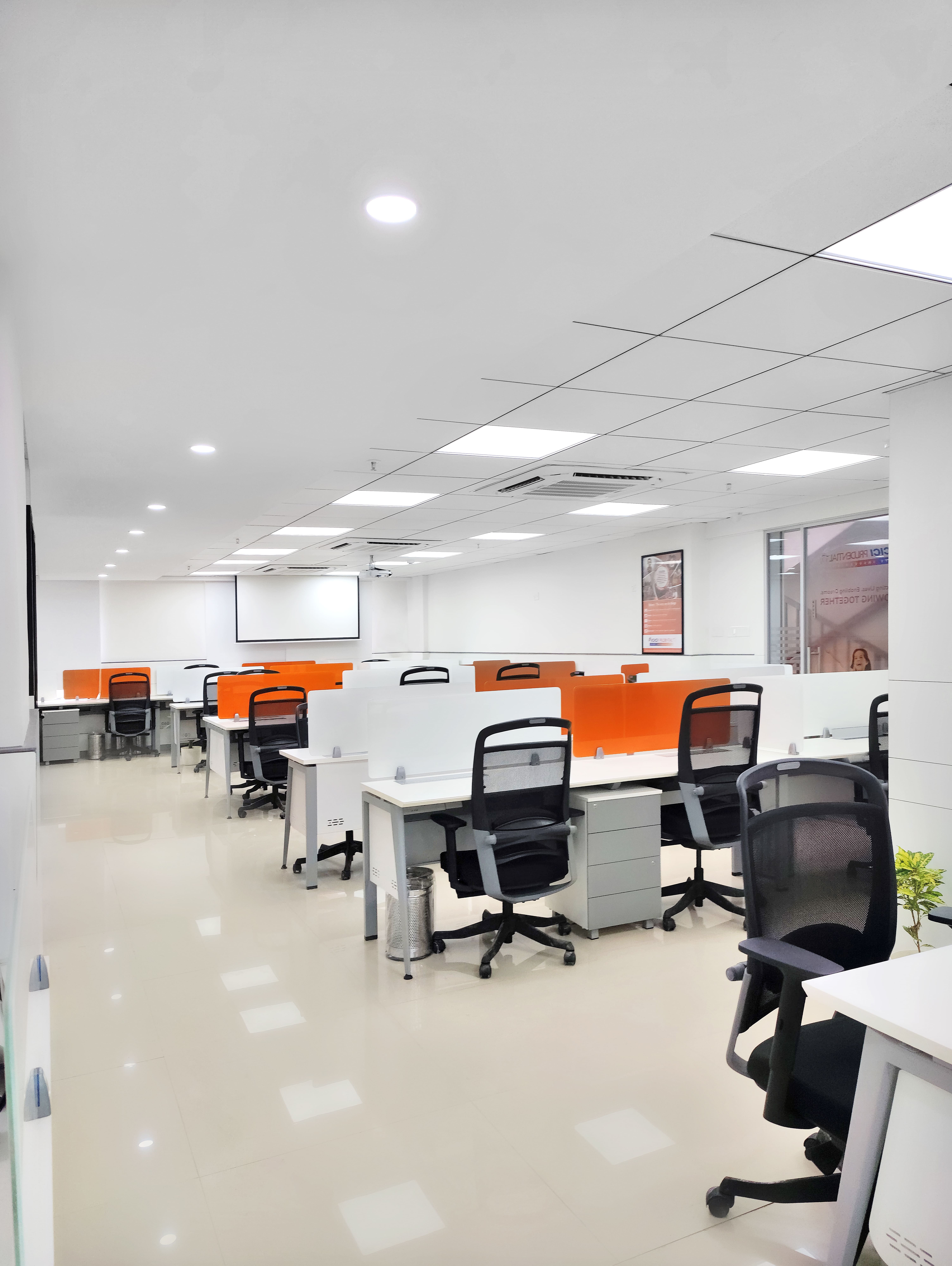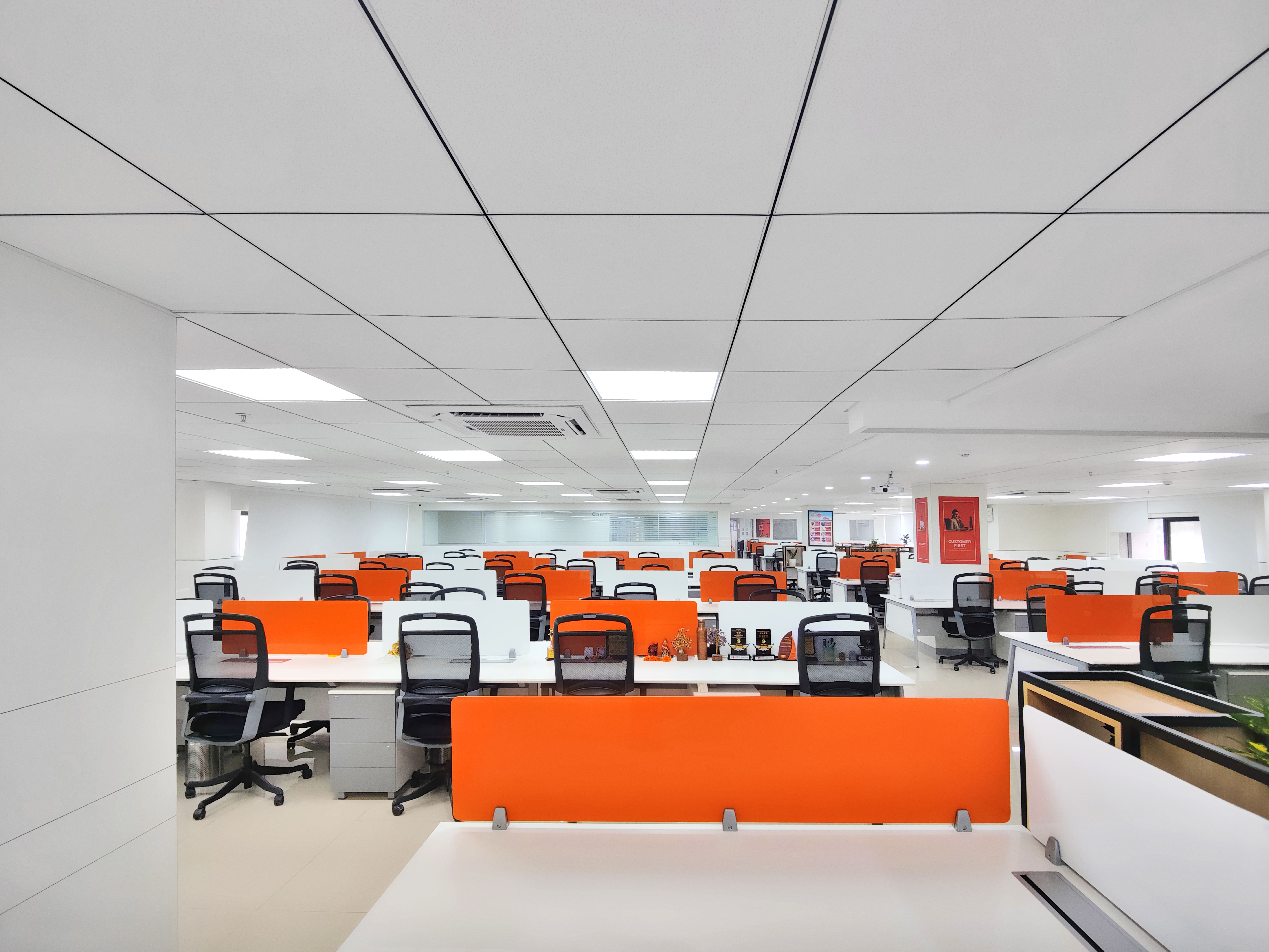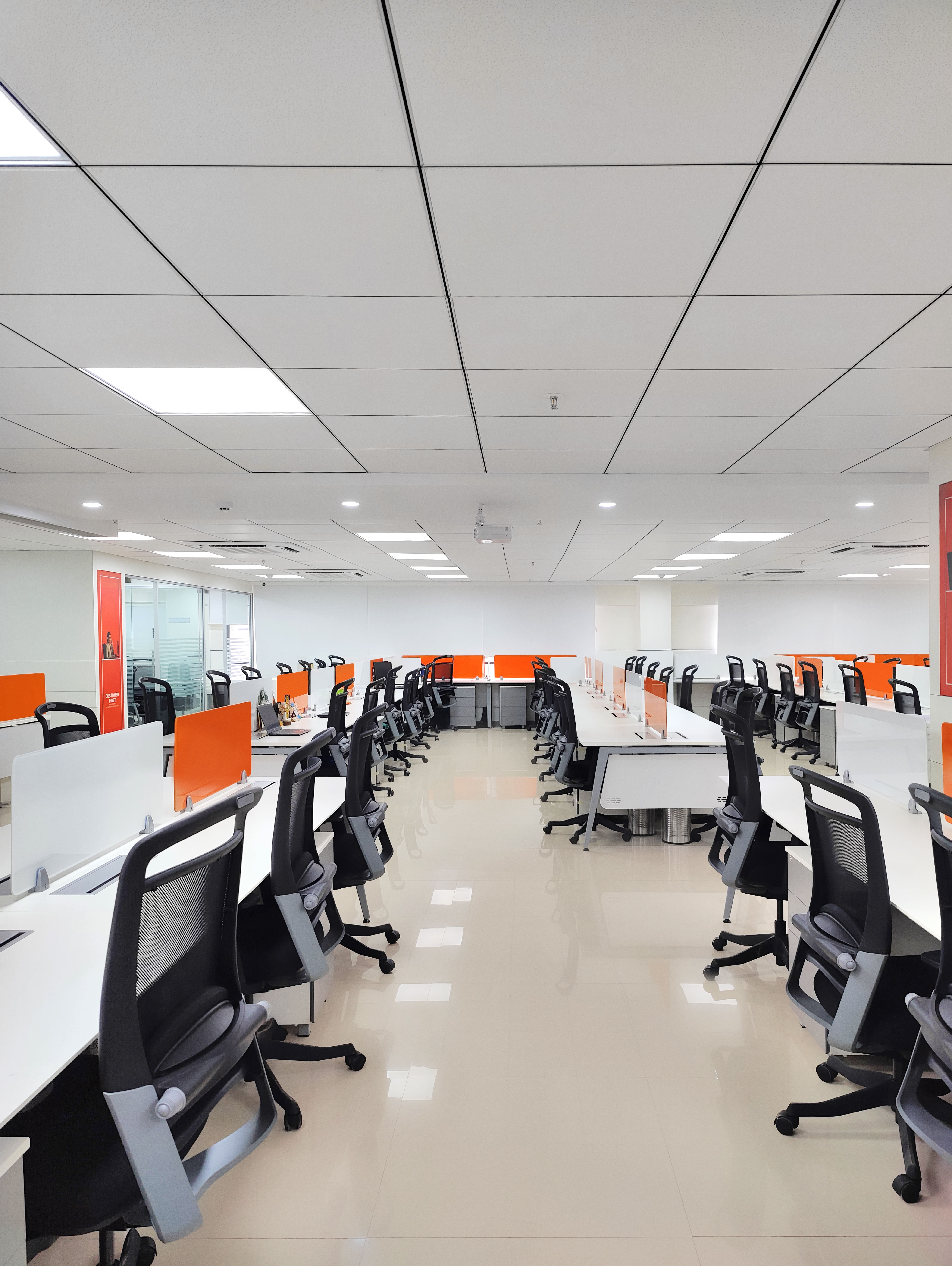 The project encompassed turnkey interior solutions and high-end fit-outs, featuring ergonomic workspaces, executive cabins, dynamic meeting rooms, and collaborative zones. Premium materials, optimized space planning, and innovative lighting solutions were incorporated to create a workspace that fosters productivity and professionalism.