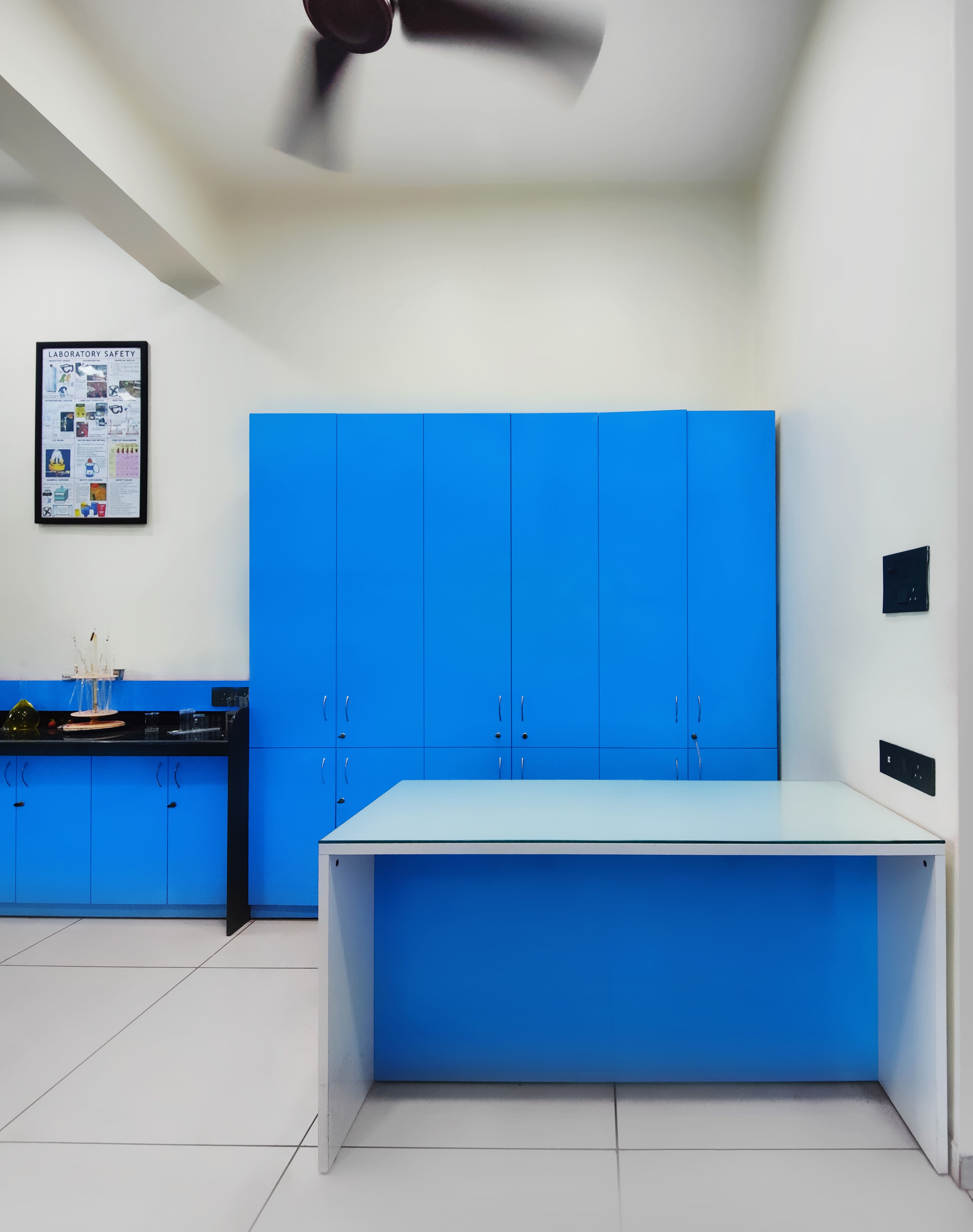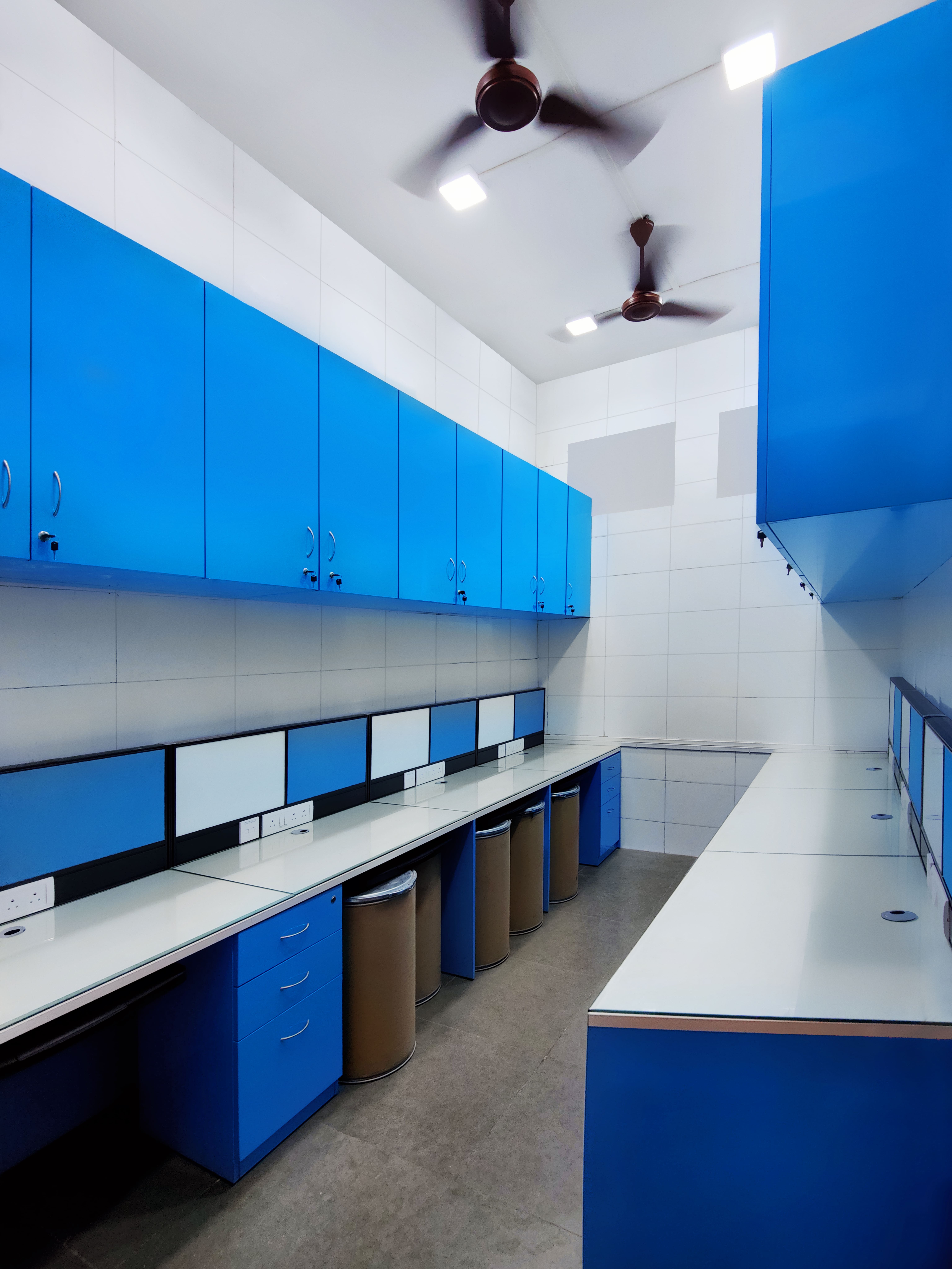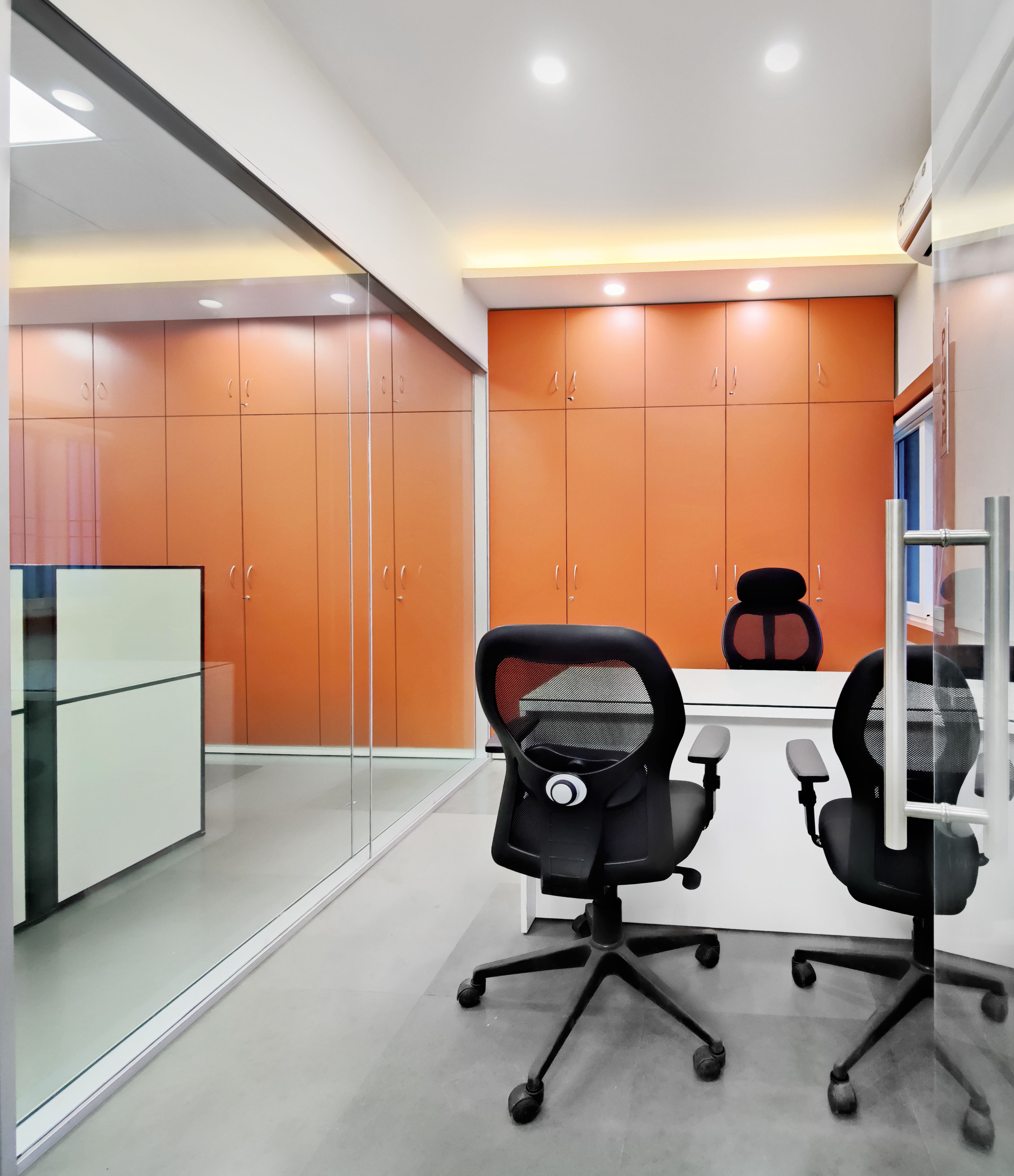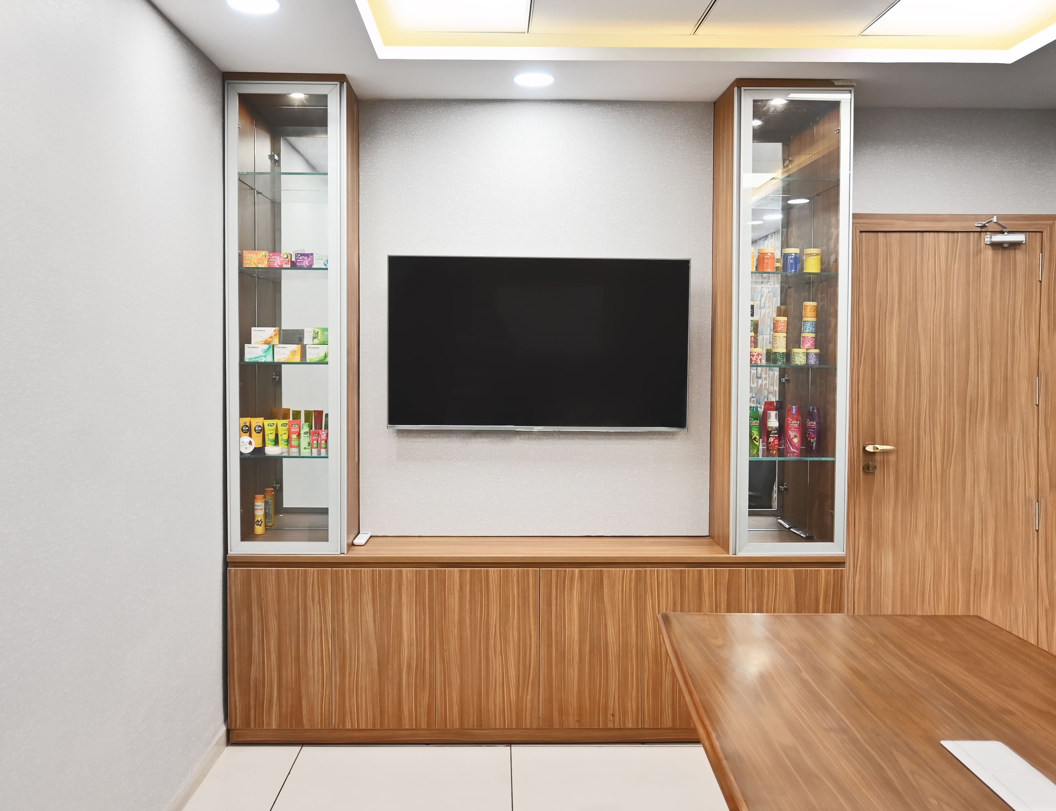 Thoughtfully integrated lighting, custom furniture, and branding elements create a seamless blend of aesthetics and functionality. This project showcases our expertise in delivering turnkey office interiors tailored to corporate needs.