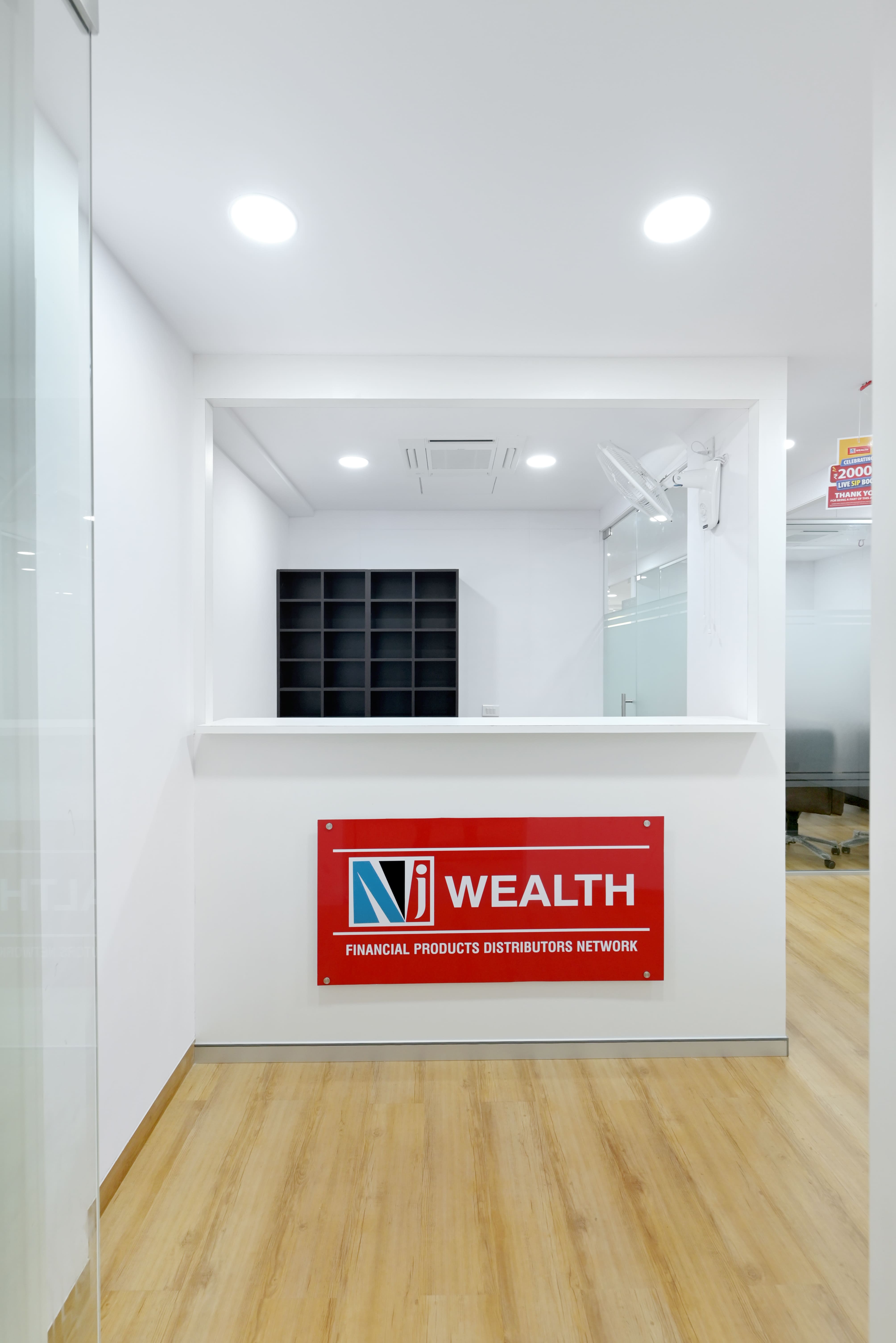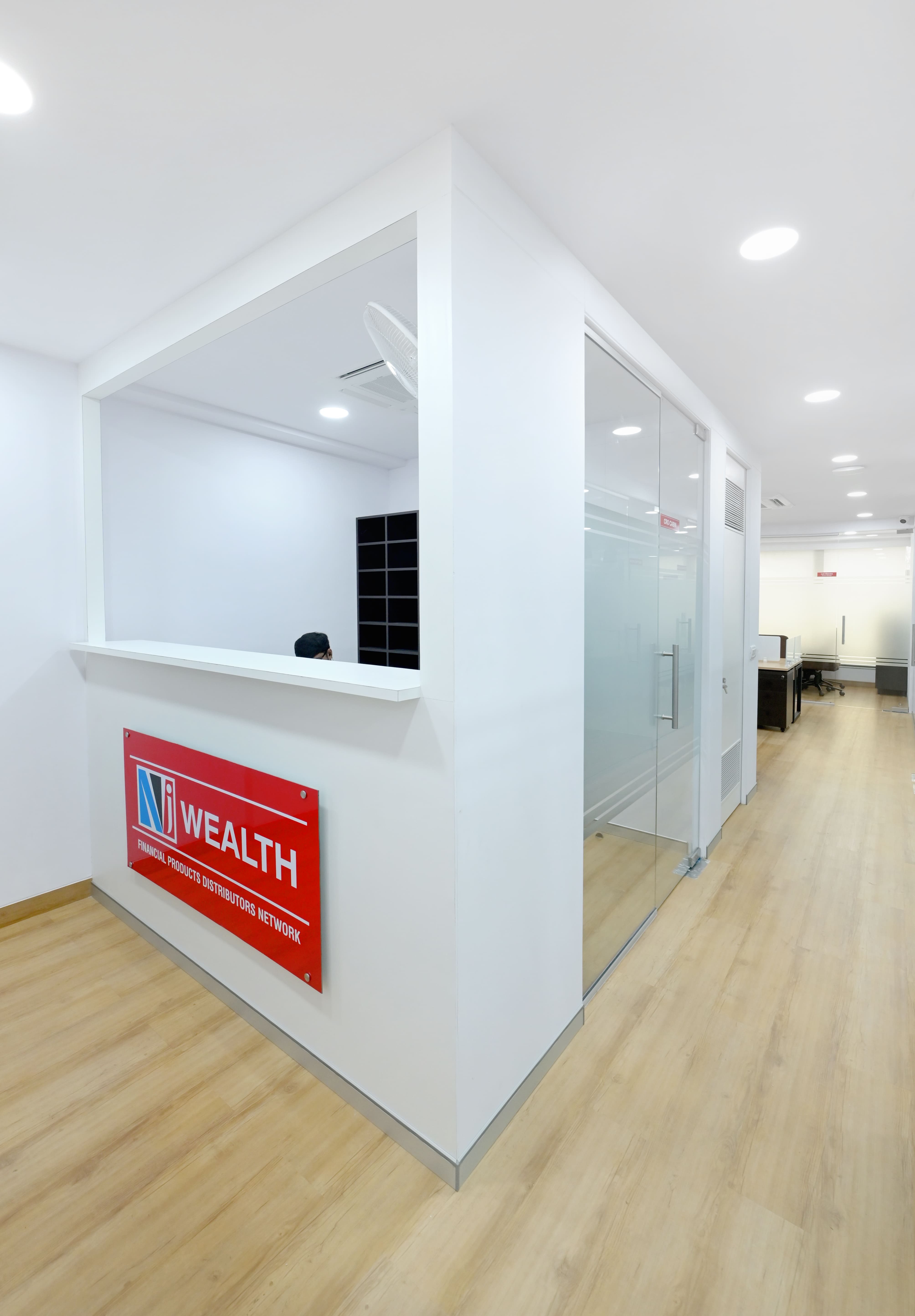 Vivid Decor crafted a modern and efficient workspace for NJ Wealth’s Surat office, designed to enhance productivity, collaboration, and brand presence. The interiors feature ergonomic workstations, executive cabins, premium meeting rooms, and breakout spaces, all tailored to support a dynamic corporate environment.