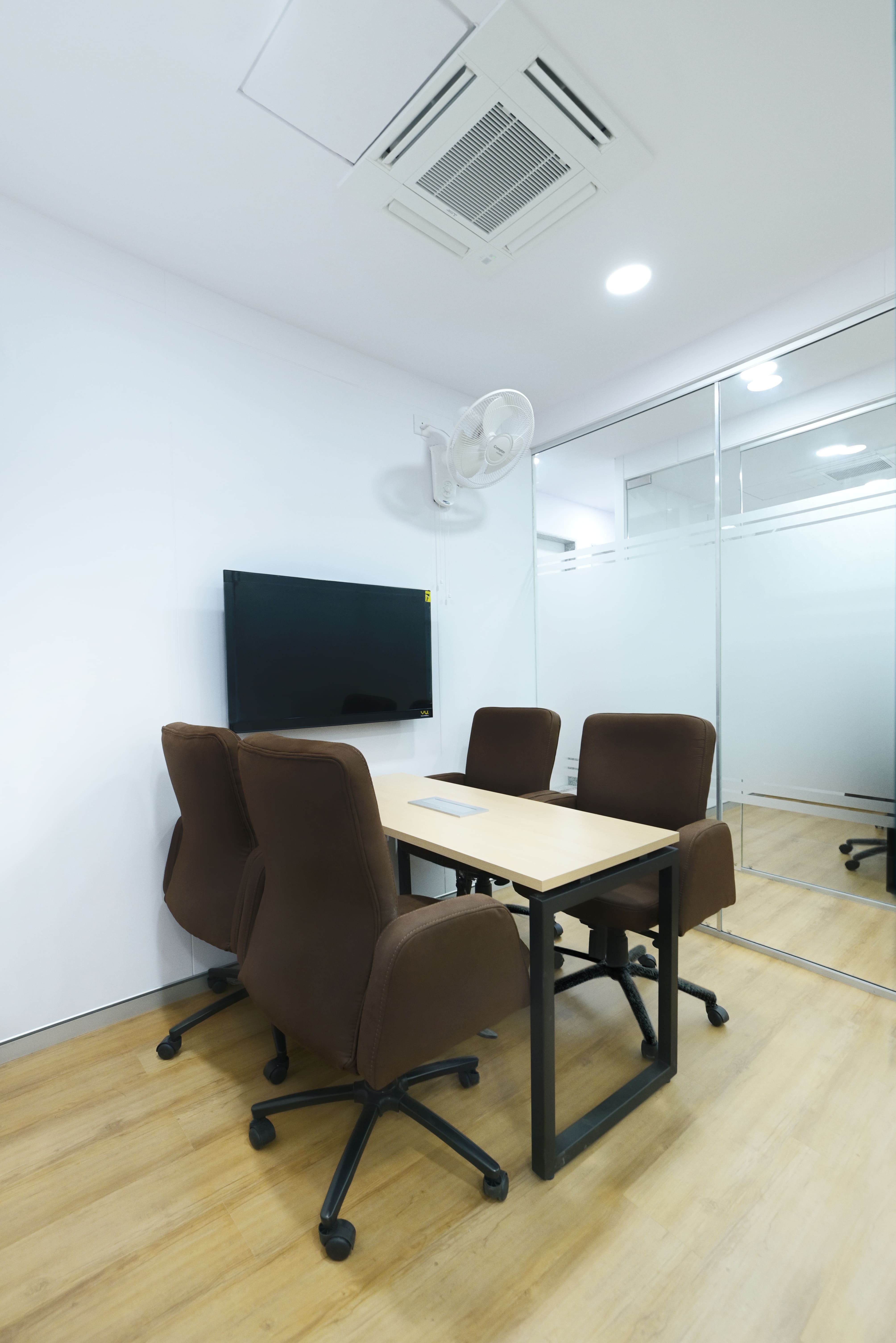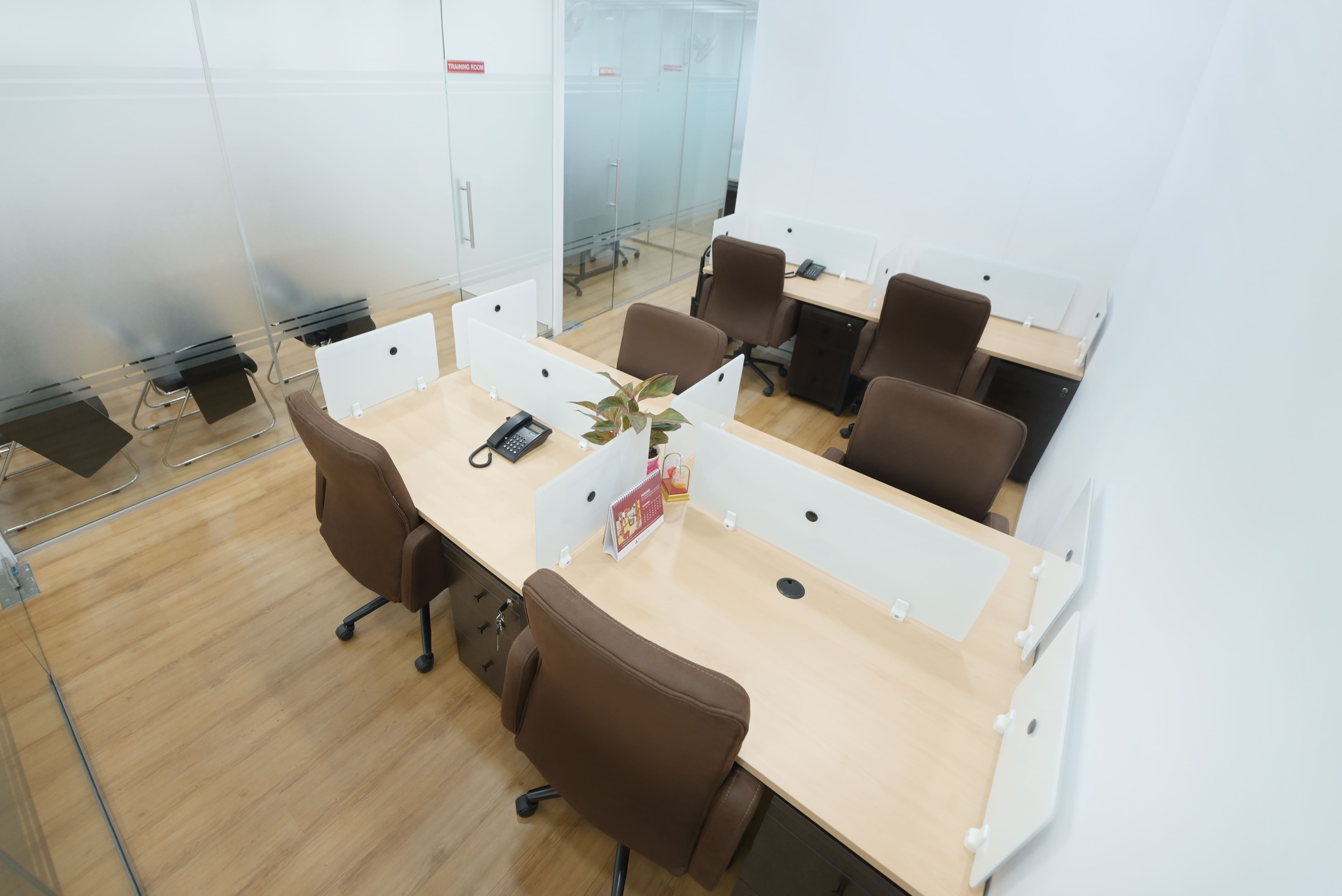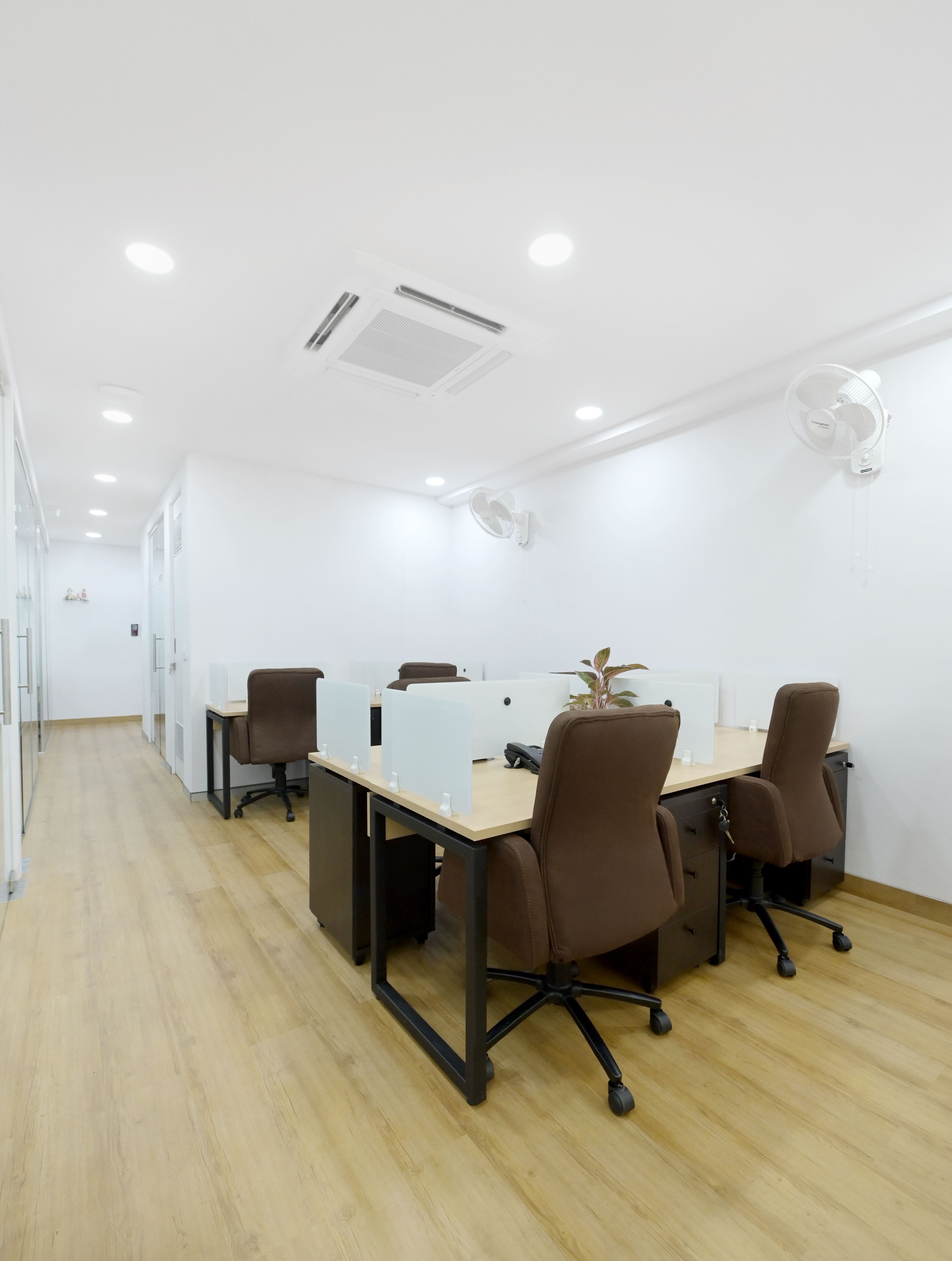 A blend of high-quality finishes, strategic lighting, and optimized layouts ensures a workspace that is both aesthetically refined and highly functional, fostering a professional yet inviting atmosphere.